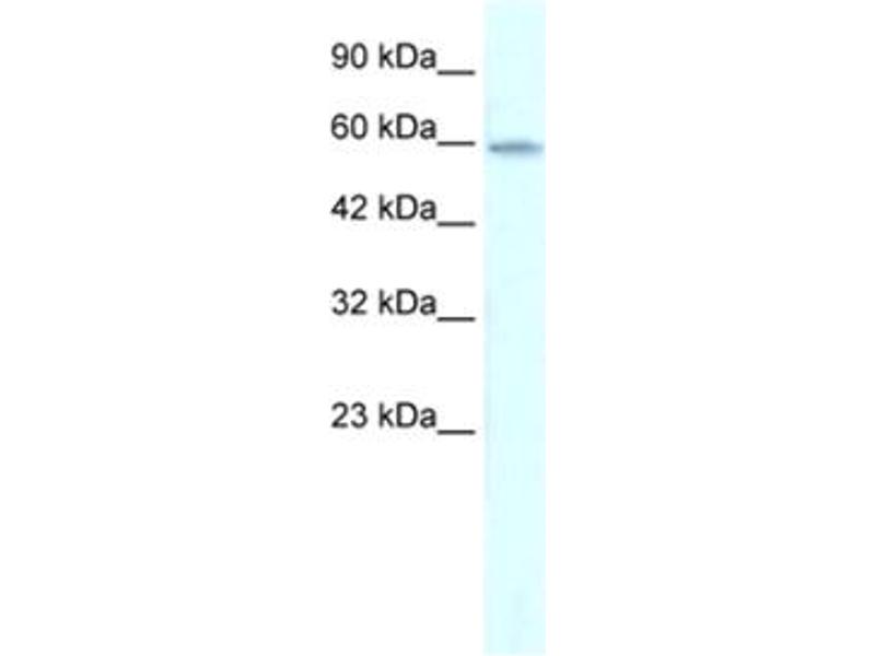 ZNF543 antibody can be used for detection of ZNF543 by ELISA at 1:12500. ZNF543 antibody can be used for detection of ZNF543 by western blot at 0.5 μg/mL, and HRP conjugated secondary antibody should be diluted 1:50,000 - 100,000.