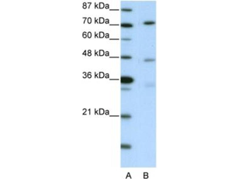 ATG4B antibody can be used for detection of ATG4B by ELISA at 1:12500. ATG4B antibody can be used for detection of ATG4B by western blot at 2.5 μg/mL, and HRP conjugated secondary antibody should be diluted 1:50,000 - 100,000.