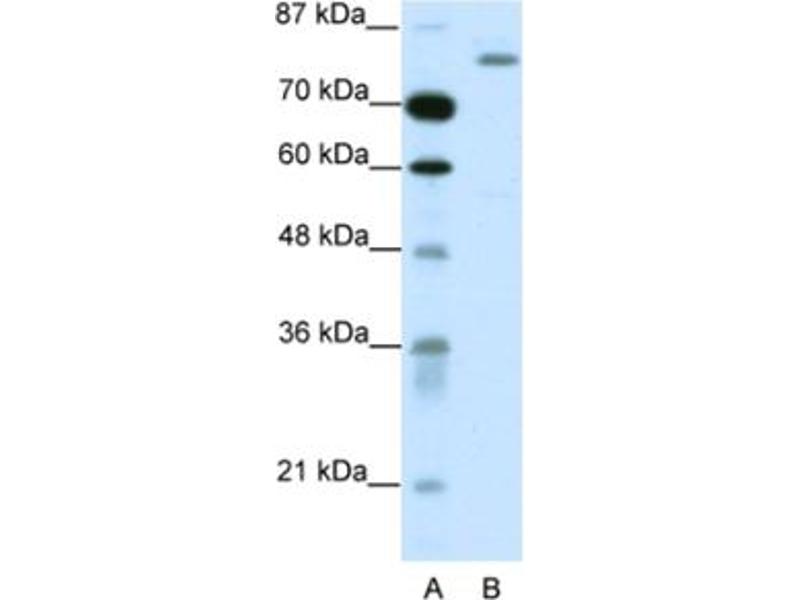 TRIM28 mediates transcriptional control by interaction with the Kruppel-associated box repression domain found in many transcription factors. TRIM28 localizes to the nucleus and is thought to associate with specific chromatin regions. It is a member of the tripartite motif family. This tripartite motif includes three zinc-binding domains, a RING,a B-box type 1 and a B-box type 2, and a coiled-coil region.