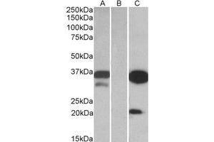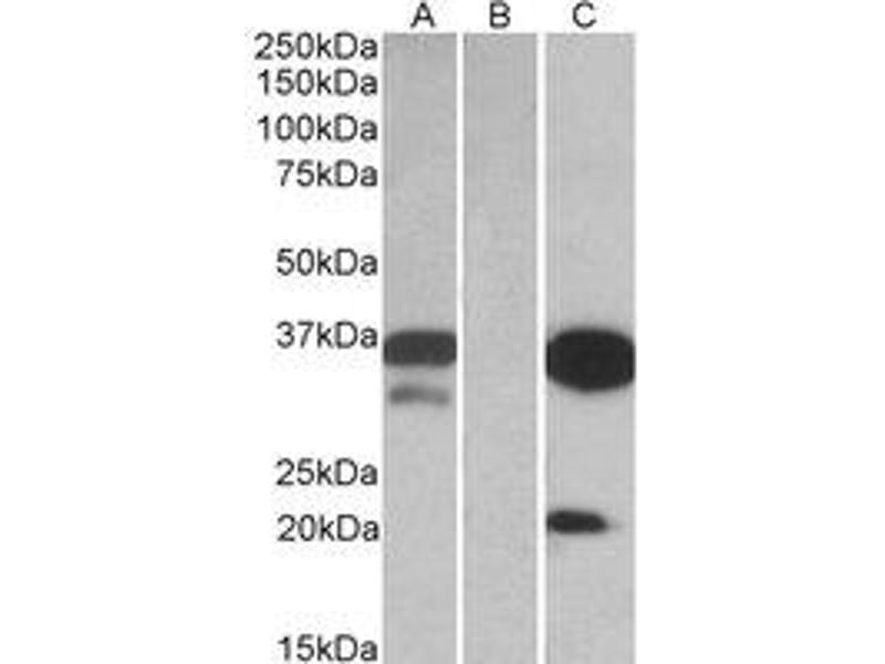 ELISA: Antibody detection limit dilution 1:8000. In transfected HEK293 transiently expressing full-length human DAPP1 (myc and DYKDDDDK tagged), a band of Western Blot: Approximately 35 kDa was observed. No bands were observed in mock-transfected HEK293 and the same band was observed using anti-DYKDDDDK tag antibody. Recommended concentration, 0.1- 0.3 μg/mL.