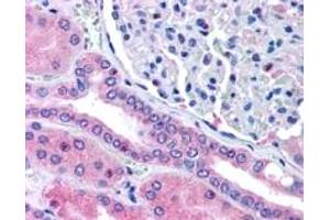 ELISA: Antibody detection limit dilution 1:32,000. Western Blot: Approximately 35 kDa band in human pancreas and prostate lysates after 0.3 μg/mL antibody staining.2. The 35 kDa band was successfully blocked by incubation with the immunizing peptide. Immunohistochemistry: In paraffin embedded human kidney shows staining of cellular membrane and cytoplasm in convoluted tubular cells. Recommended concentration 5-10 μg/mL.