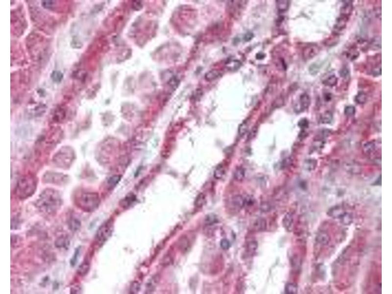 IL-1 receptor-associated kinases (IRAKs) are important mediators in the signal transduction of Toll/IL-1 receptor (TIR) family members. The cytoplasmic domains of TIR proteins interact with the adapter protein, MyD88. MyD88 then recruits IRAKs (IRAK-1, -2, and M), which in turn interact with other adapter molecules, such as TRAF6 to activate NF-κ,B and MAPK pathways. Recently, a new member of this family, IRAK-4 has been identified. IRAK-4 may act as an upstream activator of IRAK-1. IRAK-4 is important for LPS activation of TLRS. Mice lacking IRAK-4 are resistant to lethal doses of LPS and are also severely impaired in their responses to viral and bacterial challenges (4, 5). IRAK4, an IRAK type protein kinase, is a signal transducer for the immune response Toll-like receptor and interleukin-1 (IL-1) receptor signaling cascades. IRAK4 has auto- and cross-phosphorylation kinase activity and has been shown to phosphorylate and activate IRAK1. Additionally, IRAK4 interacts with IRAK1 and TRAF6 in an IL-1-dependent manner, and overexpression of IRAK4 can activate NF-kappaB as well as mitogen-activated protein (MAP) kinase pathways. IRAK4 (-/-) mice are resistant to a lethal dose of lipopolysaccharide and are severely impaired in their responses to viral and bacterial challenges. At least two mRNA transcripts have been reported: 3.0- and 4.4-kb. IRAK4, also referrred to as NY-REN-64, was first identified as an anitgen in a screen of renal tumors.
