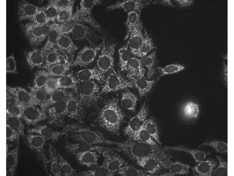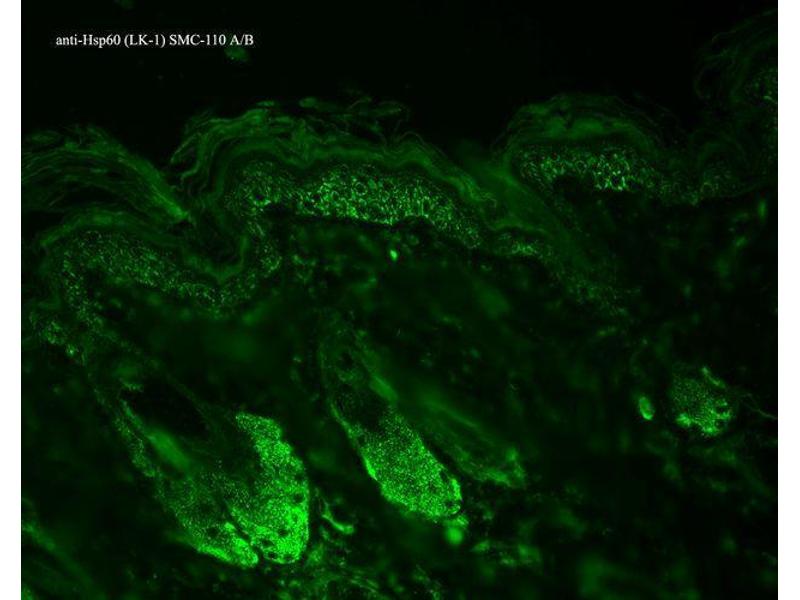 0.05 μg/ml of ABIN2481442 was sufficient for detection of HSP60 in 20 μg of heat shocked HeLa cell lysate by colorimetric immunoblot analysis using goat anti-mouse IgG as the secondary antibody.