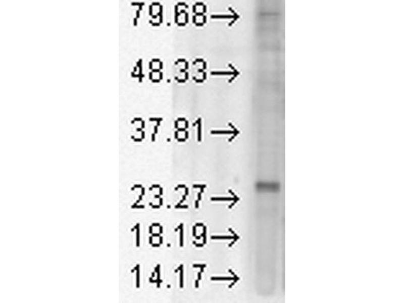 1 μg/ml was sufficient for detection of KDEL receptor in 20 μg monkey Vero cell lysate by colorimetric immunoblot analysis using Goat Anti-Mouse IgG:AP as the secondary.