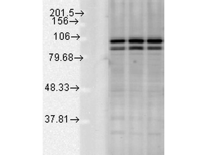 A 1:2000 dilution of ABIN2481645 was sufficient for detection of Calnexin in 10 μg of HeLa cell lysate by ECL immunoblot analysis.