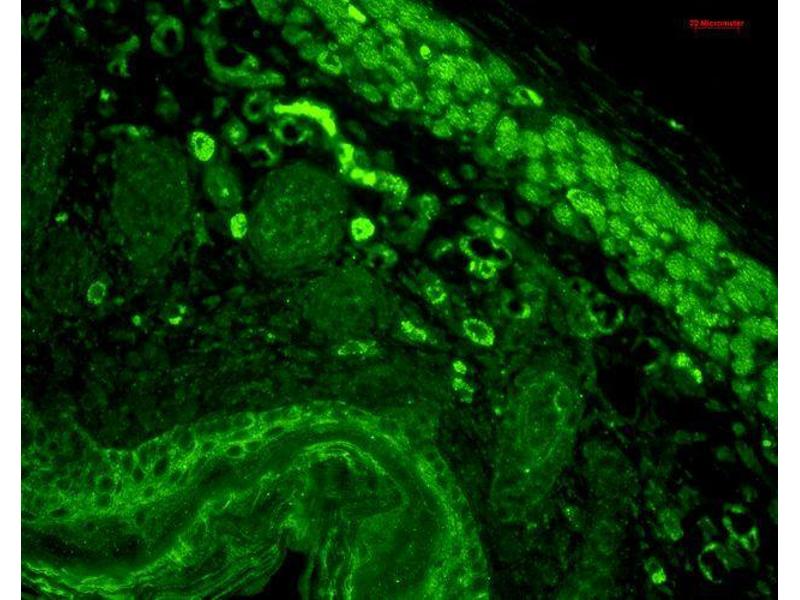1 μg/ml of ABIN2481701 was sufficient for detection of CD74 in 20 μg of PALA cell lysates by colorimetric immunolot analysis using goat anti-mouse IgG: AP as the secondary antibody.