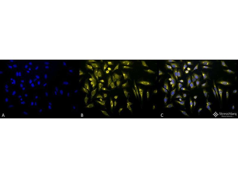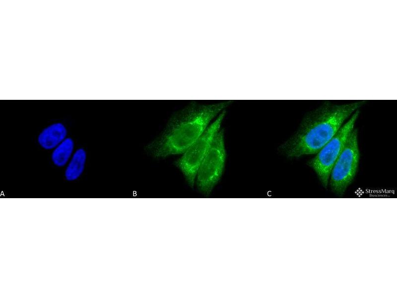 A 1:1000 dilution of ABIN2481795 was sufficient for detection of KDEL-containing proteins in 20 μg of HeLa cell lysate by ECL immunoblot analysis using goat anti-mouse IgG as the secondary.