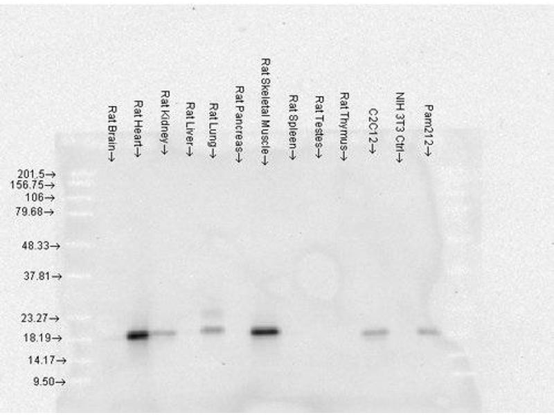- Detects ~20 kDa (predicted mol.weight is ~21 kDa). Does not cross-react with αA-crystallin, βL-crystallin, ΒH-crystallin, γ-crystallin, HSP25, HSP27 or HSP47 proteins.