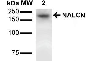 - NALCN (sodium leak channel non-selective protein), alsoknown as CanIon or VGCNL1 (voltage gated channel-like protein 1), is a 1738 amino acid multi-pass membrane protein that belongs to the cation-nonselective channel family. NALCN is highly conserved in mammals and is widely expressed in the central nervous system. Activated by NK-1R, NALCN is a voltage-independent, nonselective cation channel which is permeable to sodium, potassium and calcium ions. NALCN is responsible for background sodium ion leak conductance in neurons and regulates basal excitability of the nervous systems. Defects of NALCN in mice causes disruption in respiratory rhythm and death occurs within 24 hours of birth. Three isoforms of NALCN exists due to alternative splicing events.