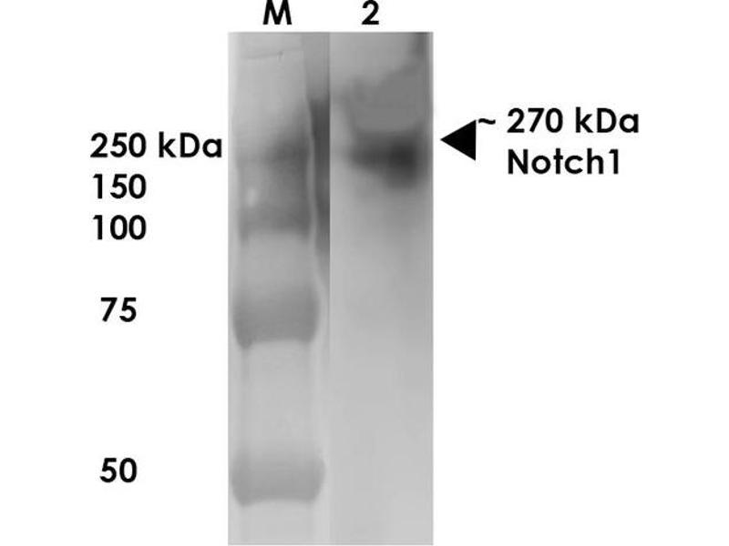 - Detects >270 kDa. Does not cross-react with Notch 2 or Notch3.