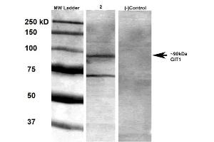 - Detects ~90 kDa. Does not cross-react with GIT2.