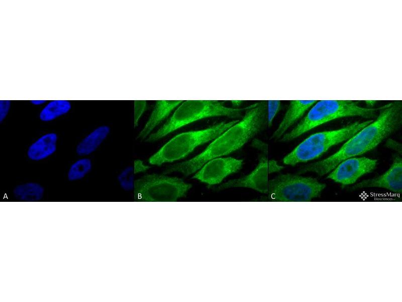 0.5 μg/ml of ABIN2484396 was sufficient for detection of ERp57 in 10 μg of heat shock Heal Lysate by colorimetric immunoblot analysis using Goat anti-mouse IgG:HRP as the secondary antibody.