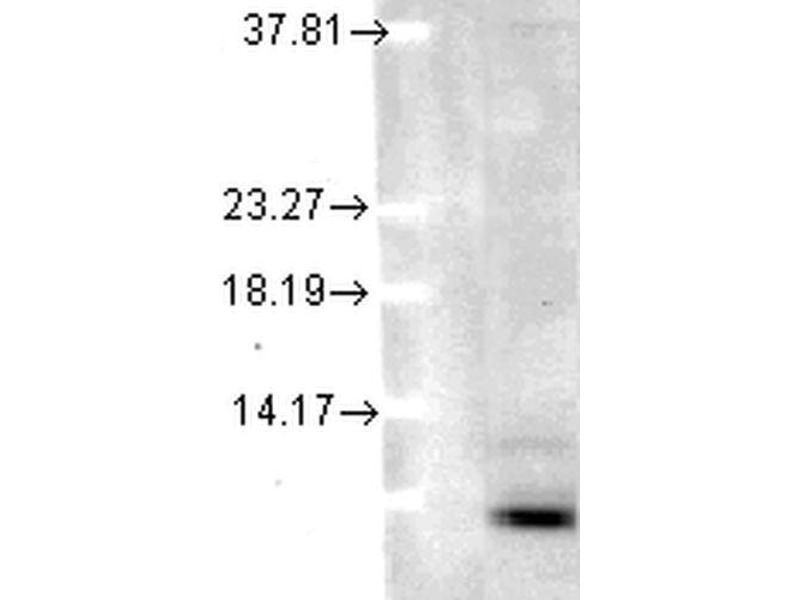 1 μg/ml of ABIN2484481 was sufficient for detection of ubiquitin in 10 μg of Heal Lysate by colorimetric immunoblot analysis using Goat anti-mouse IgG:HRP as the secondary antibody.