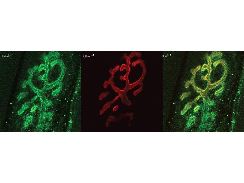 - Detects ~420 kDa. Multiple isoforms can be detected.