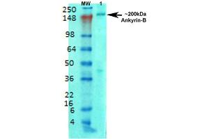 - Detects ~200 kDa. No cross reactivity against Ankyrin-G.