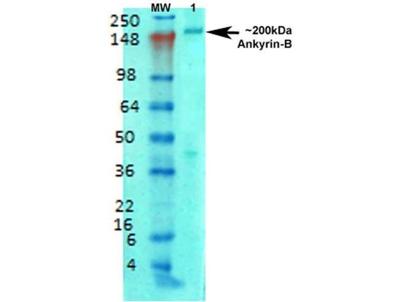 - Detects ~200 kDa. No cross reactivity against Ankyrin-G.