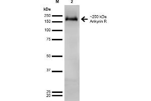 - Detects ~200 kDa. Does not cross-react with Ankyrin-B or Ankyrin-G.