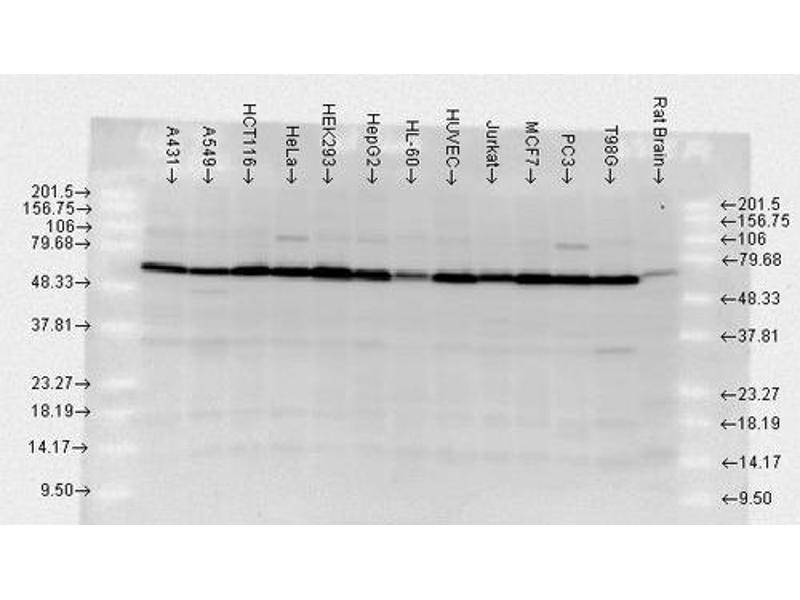 - Detects a ~70 kDa. May cross-react with HSC70 at lower dilutions.