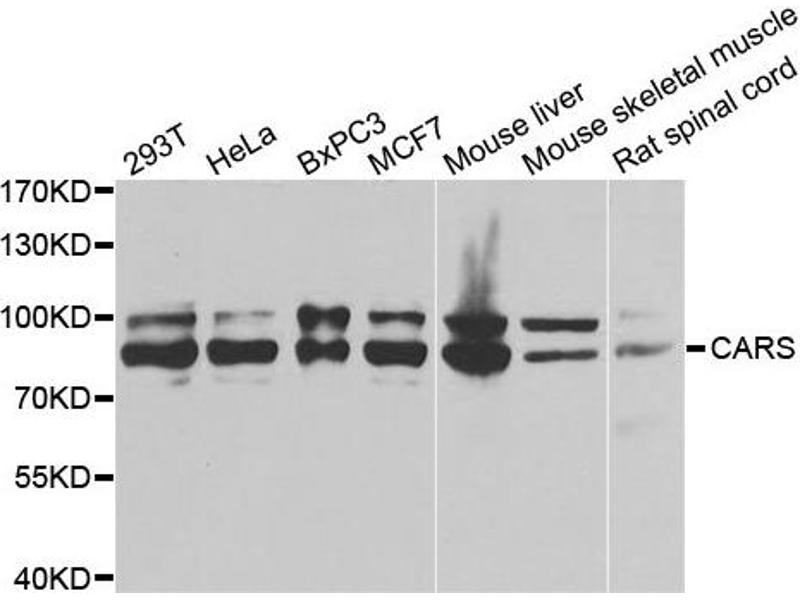 Der Kaninchen Polyklonal Anti-CARS Antikörper wurde für WB und IHC validiert. Er ist geeignet, CARS in Proben von Human zu detektieren.