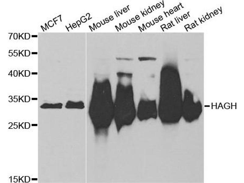 Der Kaninchen Polyklonal Anti-HAGH Antikörper wurde für WB und IHC validiert. Er ist geeignet, HAGH in Proben von Human zu detektieren.