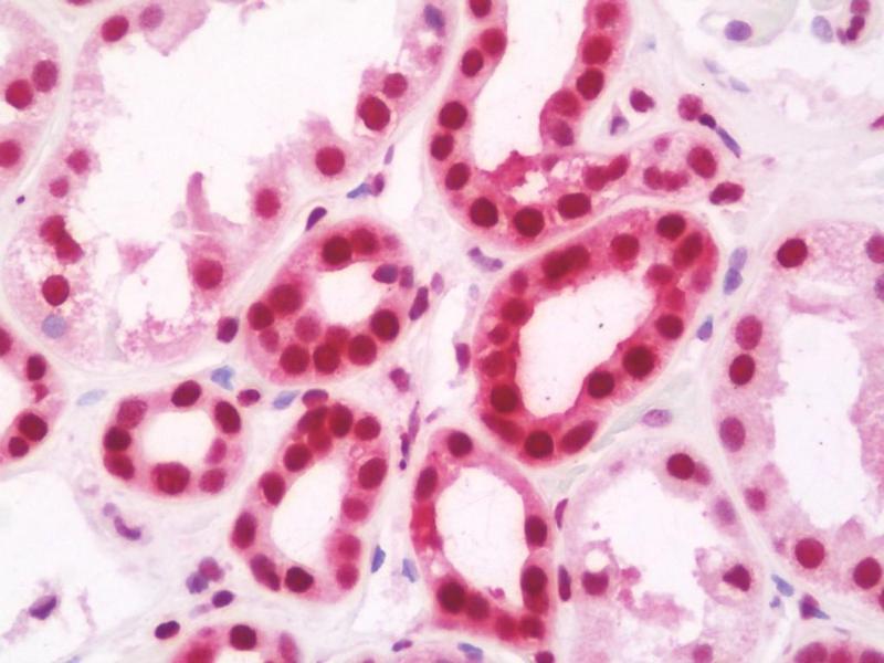 Usage: Immunohistochemistry: Formalin-fixed paraffin-embedded sections. Sandwich ELISA: Recombinant protein. Western Blot: Cell lysate, Recombinant protein. -