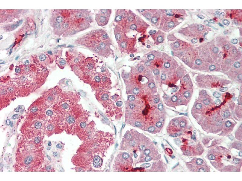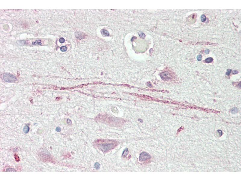 Immunohistochemistry: Paraffin embedded Human Brain (Cortex) and Pancreas. Recommended concentration: 5 μg/mL.