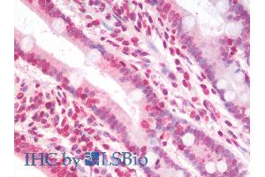 Immunohistochemistry: Paraffin embedded Human Small Intestine. Recommended concentration: 5 μg/mL.