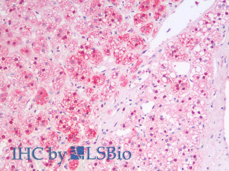 Immunohistochemistry: Paraffin embedded Human Adrenal Gland. Recommended concentration: 5 μg/mL.