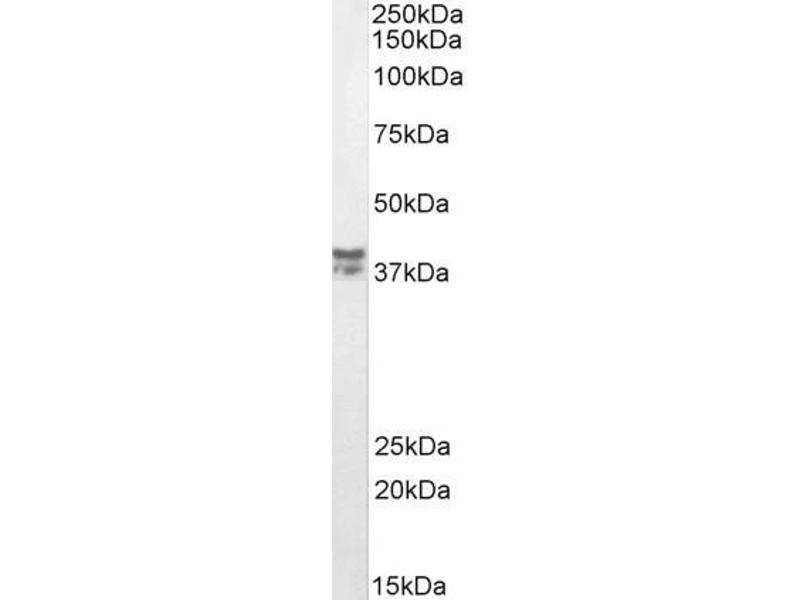 Western Blot: Approx 37 kDa band observed in lysates of cell line Kelly (calculated MW of 35.2 kDa according to NP_620412.1). Recommended concentration: 0.1-0.3 μg/mL. Approx 37+39 kDa bands observed in fetal Mouse Brain lysates (calculated MW of 36.9 kDa acc