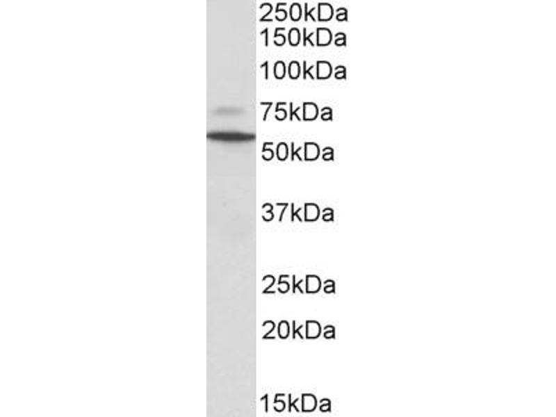 Western Blot: Approx 55 kDa band observed in Rat Colon lysates (calculated MW of 54.0 kDa according to NP_036765.2). Recommended concentration: 0.1-0.3 μg/mL. An additional faint band of unknown identity was also consistently observed at 75 kDa. This band wa