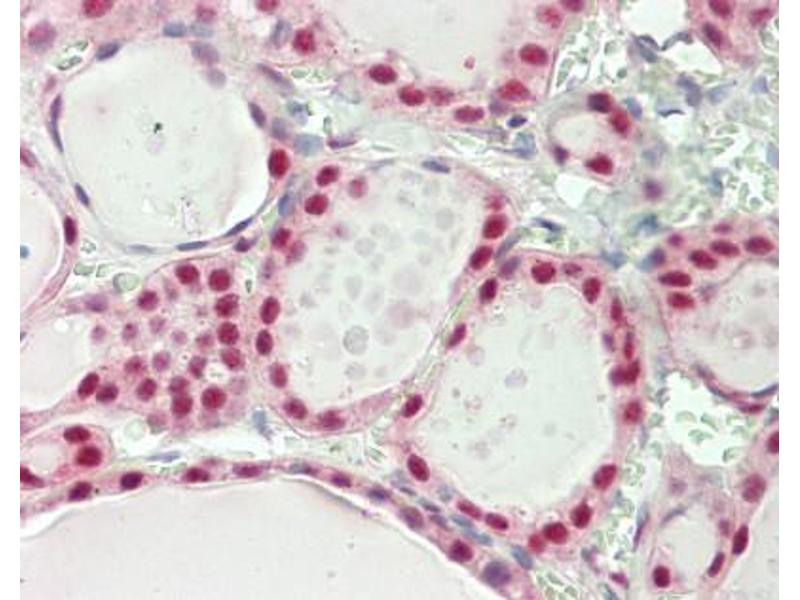Usage: Immunohistochemistry: Antigen retrieval with citrate buffer pH 6.0 is recommended for FFPE tissue sections. Human controls: Breast Carcinoma, Colon Carcinoma, Lung Adenocarcinoma, Ovarian Carcinoma, Prostate Carcinoma. -