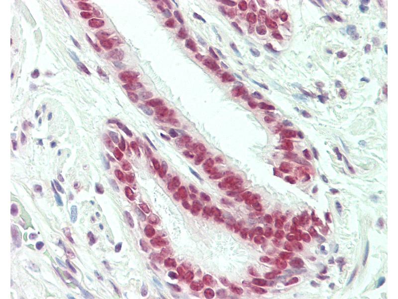 Usage: Immunohistochemistry: Antigen retrieval with citrate buffer pH 6.0 is recommended for FFPE tissue sections. Human controls: Breast Carcinoma, Laryngeal Squamous Cell Carcinoma, Ovarian Carcinoma, Prostate Carcinoma, Stomach Adenocarcinoma, Testicular Seminoma .