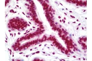 Usage: Immunohistochemistry: Antigen retrieval is recommended. Antigen retrieval with citrate buffer will enhance staining. Likely to work with frozen sections. In some cases, the antibody may be diluted further than indicated. Human controls: Breast, Breast Carcinoma. Mouse controls: Squamous Cell Carcinoma. -