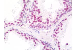 Usage: Immunohistochemistry: Antigen retrieval is recommended. Antigen retrieval with citrate buffer will enhance staining. Likely to work with frozen sections. In some cases, the antibody may be diluted further than indicated. Human controls: Breast Carcinoma, Colon Carcinoma, Laryngeal Squamous Cell Carcinoma, Linitis Plastica Stomach Cancer, Metastatic Lym pH Node, Non-Small Cell Lung Cancer, Ovarian Carcinoma, Prostate Carcinoma, Skin Basal Cell Carcinoma, Small Cell Lung Cancer, Stomach Adenocarcinoma, Testicular Seminoma. -