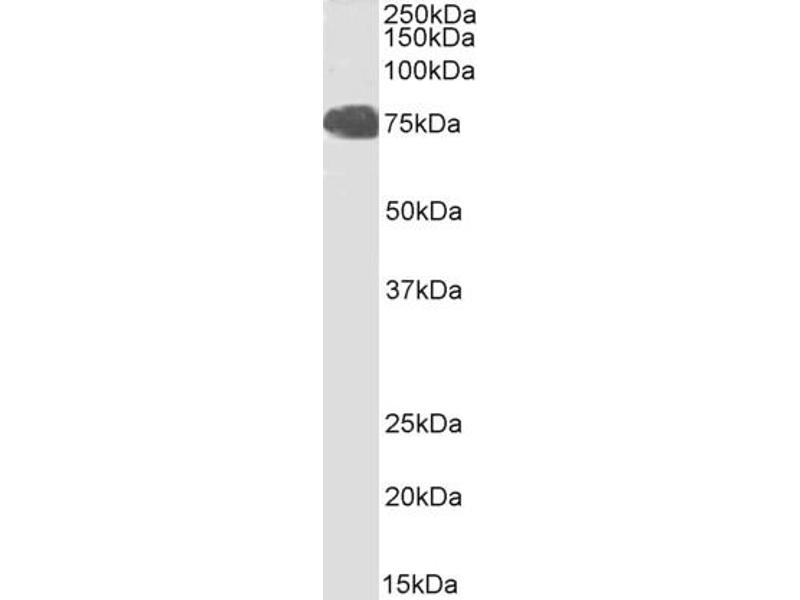 Western Blot: Approx 80-90 kDa band observed in Human Brain (Cerebellum) lysates (calculated MW of 82.6 kDa according to NP_683696.2). This molecular weight is routinely observed by other sources. Recommended concentration: 0.5-2 μg/mL. Primary incubation