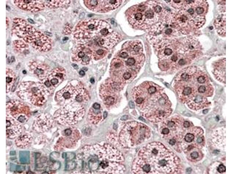 Immunohistochemistry: In paraffin embedded Human Adrenal Gland shows staining of cytoplasm and some nuclear membrane (nuclear pores). Recommended concentration, 3-6 μg/mL.