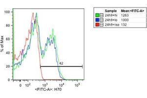 Dieser Maus Monoklonal Antikörper detektiert spezifisch HSP70 in FACS. Es zeigt Reaktivität gegenüber Proben von Human, Maus, Ratte, Huhn, Drosophila melanogaster, Rind (Kuh), Schwein, Affe, Hund, Hamster, Schaf, Meerschweinchen, Kaninchen und Karpfen. Es wurde in 9+ Publikationen zitiert.