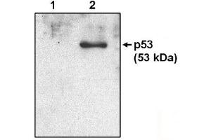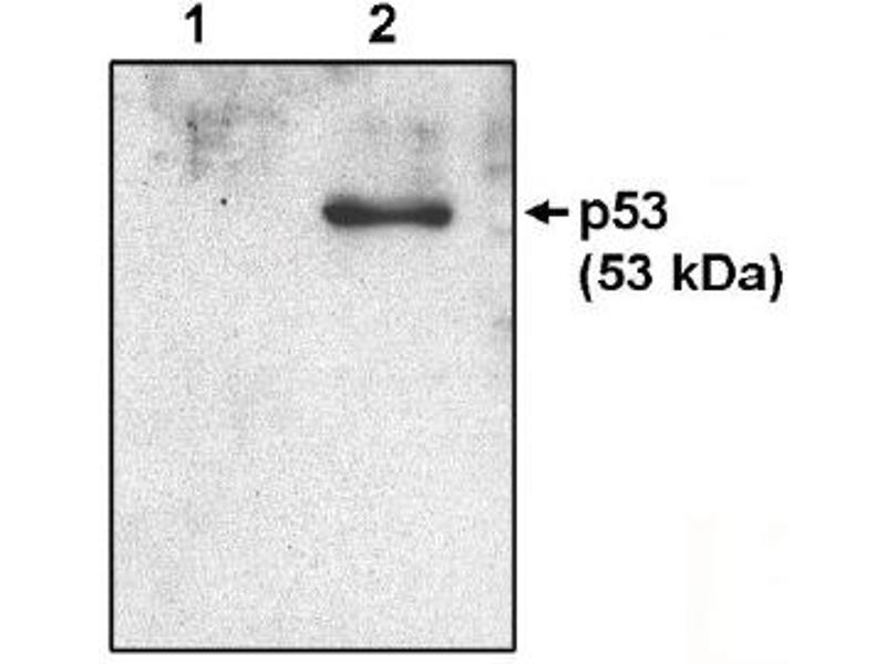 - P53 is a 53 kDa transcription factor that can inhibit cell cycle progression or induce apoptosis in response to stress or DNA damage. Disruption of the p53 signalling pathway through various mechanisms is the most common alteration in human cancer occuring in over half of all tumors. The p53 protein is short lived and expressed at low levels in normal cells but accumulates and/or is activated in cells that have undergone genotoxic damage or oncogene activation. Many tumor derived and transformed cell lines express elevated levels of mutant p53 protein. Other genes also implicated in the downstream effects as a result of p53 activation are: p21WAF1, GADD45, 14-3-3, bax, Fas/APO1, KILLER/ DR5, Tsp1, IGF-BP3 and others.Synonyms: Cellular tumor antigen p53, NY-CO-13, Phosphoprotein p53, Tumor suppressor p53