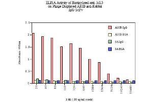 The display of repertoires of antibody fragments on the surface of filamentous phage offers a new way to produce immunoreagents with defined specificities. Phage derived antibody fragments offer a number of advantages over mouse monoclonal antibodies, such as better clearance from the blood, the possibility to select from human combinatorial libraries and the relative ease by which such fragments can be manipulated. The phage display technique thus facilitates the selection of antibody fragments of therapeutic value or research interest. Antibodies to M13 filamentous phage coat proteins are instrumental in the selection and detection of phages expressing specific antibody fragments or peptide sequences at their surface.Synonyms: Attachment protein G3P, Gene 3 protein, Minor coat protein A