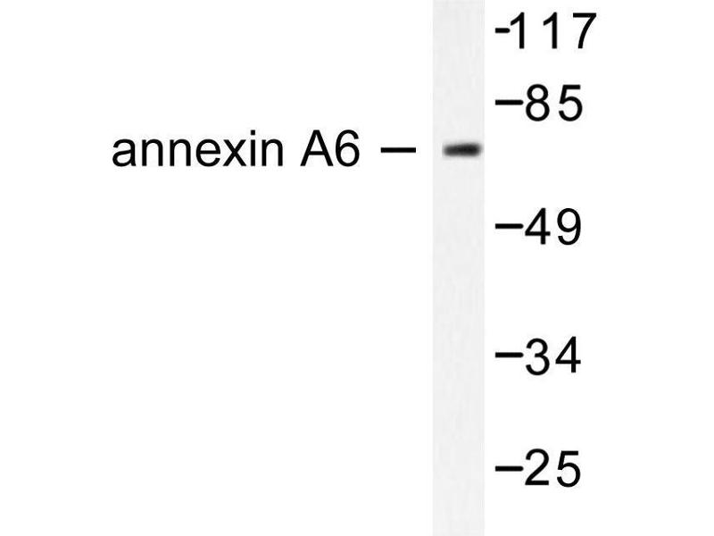 Annexin VI belongs to a family of calcium-dependent membrane and phospholipid binding proteins. Several members of the annexin family have been implicated in membrane-related events along exocytotic and endocytotic pathways. The annexin VI gene is approximately 60 kbp long and contains 26 exons. It encodes a protein of about 68 kDa that consists of eight 68-amino acid repeats separated by linking sequences of variable lengths. It is highly similar to human annexins I and II sequences, each of which contain four such repeats. Annexin VI has been implicated in mediating the endosome aggregation and vesicle fusion in secreting epithelia during exocytosis. Alternatively spliced transcript variants have been described.Synonyms: 67 kDa calelectrin, ANX6, Annexin VI, Annexin-6, CPB-II, Calphobindin-II, Chromobindin-20, Lipocortin VI, Protein III, p68, p70