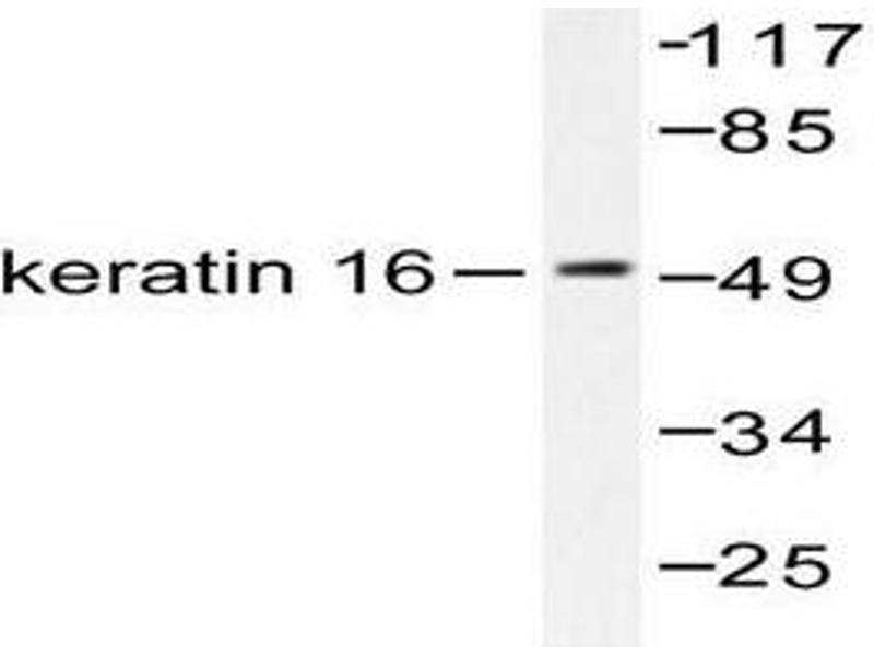 Keratin 16 is expressed in keratinocytes, which are undergoing rapid turnover in the suprabasal region (also known as hyperproliferation-related keratins). Keratin 16 is absent in normal breast tissue and in noninvasive breast carcinomas. Only 10 % of the invasive breast carcinomas show diffuse or focal positivity. Reportedly, a relatively high concordance was found between the carcinomas immunostaining with the basal cell and the hyperproliferation-related keratins, but not between these markers and the proliferation marker Ki-67. This supports the conclusion that basal cells in breast cancer may show extensive proliferation, and that absence of Ki-67 staining does not mean that (tumor) cells are not proliferating. Two cytokeratins, 6 and 16, are expressed when keratincytes are undergoing rapid turnover in various pathological states, wound healing, psoriasis and some carcinomasSynonyms: CK16, Cytokeratin-16, K16, KRT16, KRT16A, Keratin 16, Keratin type I cytoskeletal 16, Keratin-16