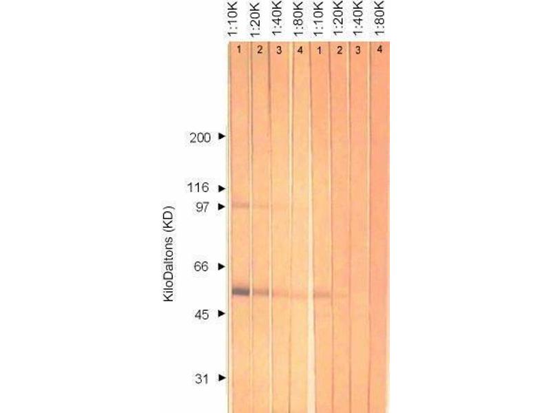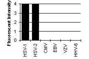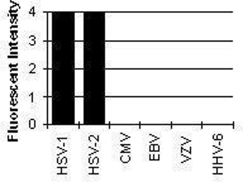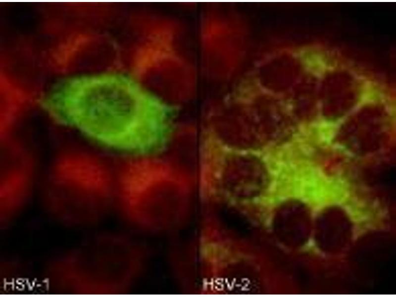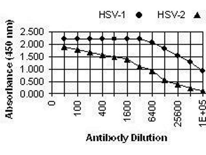 Immunofluorescence: HSV-1: 1+ at 1:25.600. HSV-2: 1+ at 1:3.200. ELISA: 0.100 at 1:102.400. Western Blotting: >1:80.000
