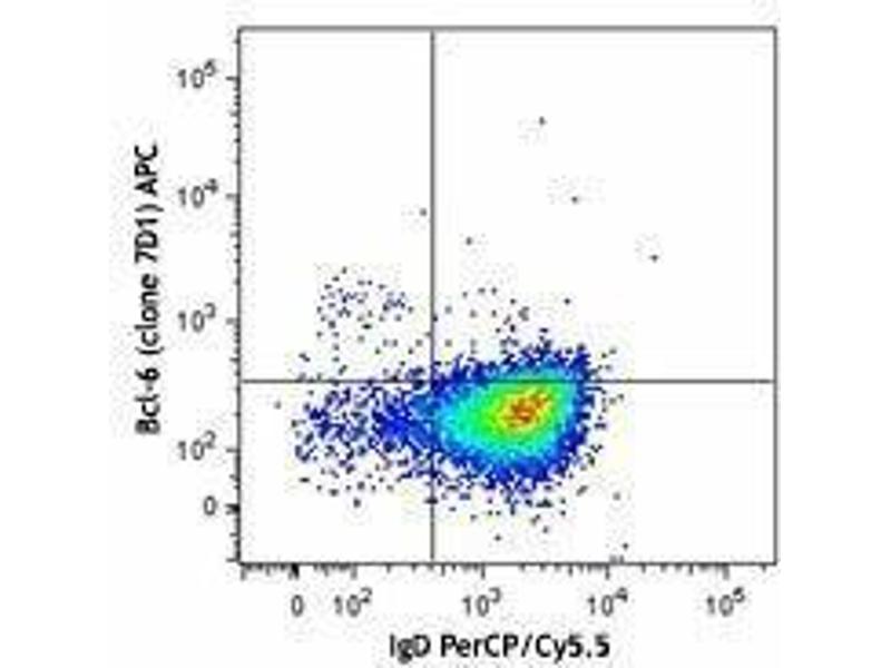 B-cell lymphoma 6 (Bcl-6), is an 80 kD homodimer, member of the BTB-POZ zinc finger family. It contains 1 BTB (POZ) domain and 6 C2H2-type zinc fingers. Bcl-6 is a transcriptional repressor, master regulator of germinal center reaction. On B cells, Bcl-6 induces proliferation, antibody class switch and affinity maturation, while inhibits its differentiation to plasma cells. On T cells, Bcl-6 induces its differentiation to TFH. This molecule is also expressed in some B cell lymphomas and breast cancer cells.
