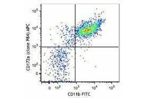 CD172a, also known as SIRPα, is a type I transmembrane protein with one V-set Ig-like and two C-set Ig-like domains in the extracellular portion, and two ITIM motifs and a proline-rich region in the cytoplasmic tail. CD172a is expressed by monocytes, macrophages, myeloid cells, and neuronal tissue. The phosphorylation of SIRPα ITIMs induces the recruitment and activation of the tyrosine phosphatases PTPN6 and PTPN11, resulting in the negative regulation of several biological processes. The ligands of CD172a are CD47, SP-A, and SP-D.