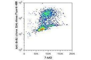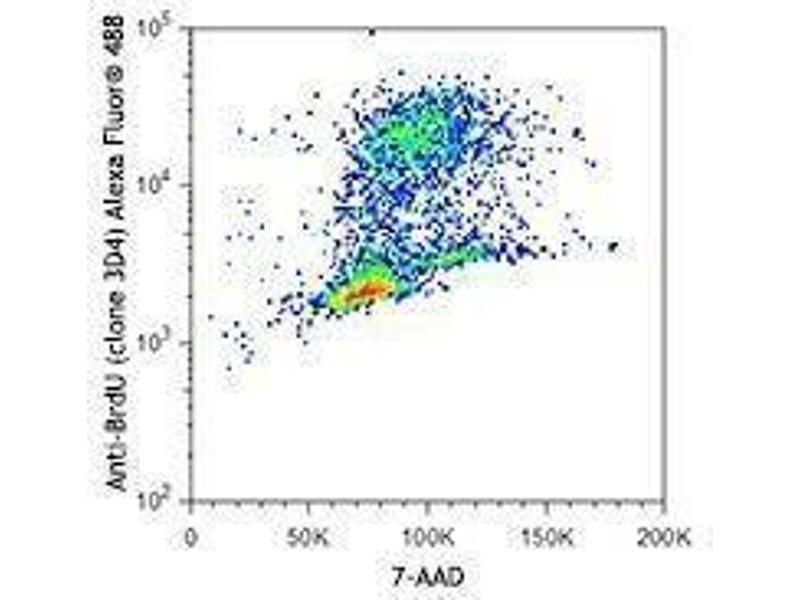 BrdU is a uridine derivative and a structural analog of thymidine, which can be incorporated into DNA during the S-phase of a cell cycle as a substitute for thymidine. Cells can be pulse-labeled with BrdU and analyzed with antibodies against BrdU to determine the proportion of cells in the S-phase of the cell cycle during a given interval.