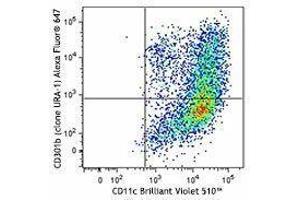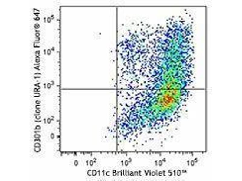 Mouse CD301, also known as macrophage galactose-type C-type lectin, has two homologue genes, CD301a (MGL1) and CD301b (MGL2), while there is only one MGL in human and rat. Mouse CD301a and CD301b are ~42 kD type II transmembrane glycoproteins containing a cytoplasmic domain, a transmembrane domain, a neck domain, and a carbohydrate recognition domain (CRD) within each molecule. CD301a is mainly expressed on a subset of macrophages and immature dendritic cells (DCs). CD301b is mainly found on conventional DCs. Although CD301a and CD301b share high amino acid sequence homology (92 % for the intact sequence and 80 % for the CRD), they display different carbohydrate specificities. CD301a was found to be highly specific for Lewis X and Lewis A structures, whereas CD301b, more similar to human MGL, recognizes N-actetylgalactosamine (GalNAc) and galactose, including the O-linked Tn-antigen, TF-antigen, and core 2. So far, CD301a has been reported to be involved in recognition and endocytosis of glycoproteins with terminal Gal/GalNAc moieties. This contributes to defense against tumor cell metastasis, tissue remodeling, and clearance of apoptotic cells in embryos. CD301b is involved in the internalization of soluble polyacrylamide polymers (PAA) with α-GalNAc residues (GalNAc-PAA) in bone marrow derived DCs.