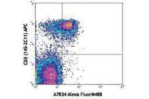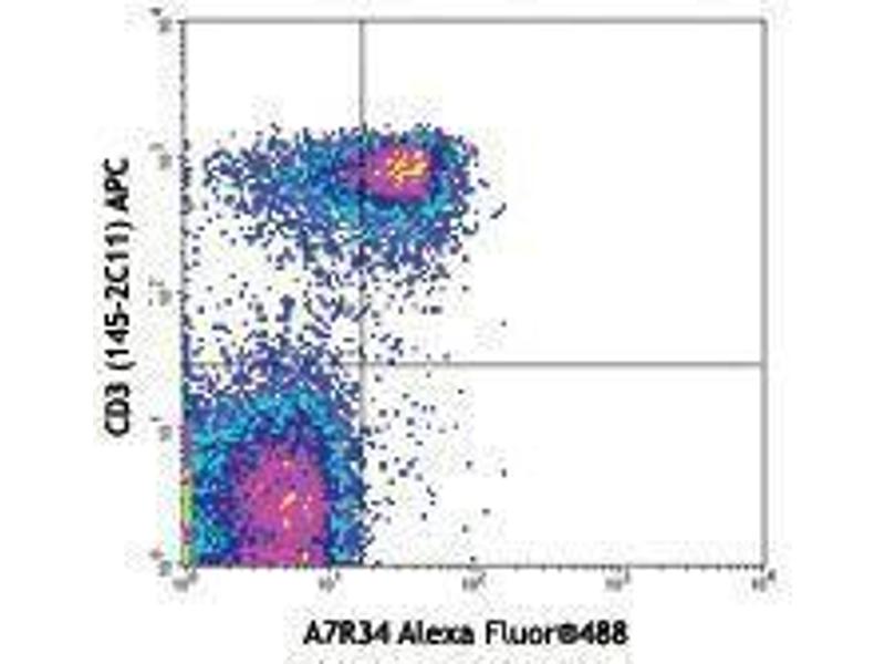 CD127 is a 60-90 kD type I transmembrane glycoprotein also known as IL-7 receptor α chain or IL-7Rα. It forms a heterodimer with the common γ chain (γc or CD132) which is shared with the receptors for IL-2, IL-4, IL-9, IL-13, IL-15, and IL-21. CD127 is expressed on immature B cells through early pre-B stage, thymocytes (except CD4/CD8 double positive thymocytes), peripheral T cells, and bone marrow stromal cells. CD127 has been reported to be an useful marker for identifying memory and effector T cells. The ligation of IL-7 with its receptor is important for stimulation of mature and immature T cells as well as immature B cells proliferation and development.