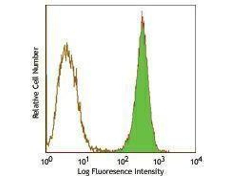 CD326 is also known as Ep-CAM, tumor associated calcium signal transducer 1, epithelial cell surface antigen, epithelial glycoprotein 2, EGP2, adenocarcinoma associated antigen, and TROP1. CD326 is a type I transmembrane protein containing six disulfide bridges and one THYRO domain. This cell surface glycosylated 40 kD protein is highly expressed in bone marrow, colon, lung, and most normal epithelial cells and is expressed on carcinomas of gastrointestinal origin. Recently, it has been reported that CD326 expression occurs during the early steps of erythrogenesis. CD326 functions as a homotypic calcium-independent cell adhesion molecule and is believed to be involved in carcinogenesis by its ability to induce genes involved in cellular metabolism and proliferation. CD326 antigen is an immunotherapeutic target for the treatment of human carcinomas.