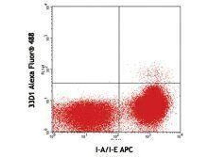 33D1 antigen, also known as DCIR2 (dendritic cell inhibitory receptor 2), is reported to be a dendritic cell marker on subpopulation DC in the spleen, thymus, and Peyer's patch. It is reported that most N418 (CD11c)+ cells in spleen are also 33D1 positive. Bone marrow dendritic cells upregulate 33D1 antigen expression after incubation with GM-CSF.