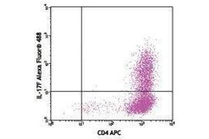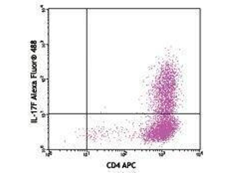Interleukin 17F (IL-17F) is a 37 kD IL-17 family member. The IL-17 family consists of six members including IL-17 (also called IL-17A), IL-17B, IL-17C, IL-17D, IL-17E (also called IL-25), and IL-17F. IL-17F shares the strongest similarity to IL-17A and forms a homodimer or heterodimer with IL-17A. It is produced by Th17 cells, mast cells, basophils, and epithelial cells. IL-17F is an important regulator of inflammatory responses. It is involved in host defense against mucoepithelial infection by Staphylococcus aureus and Citrobacter rodentium. Over expression of IL-17F gene in the airway of mice is associated with airway neutrophilia, the induction of many cytokines, an increase in airway hyperreactivity, and mucus hyper-secretion. IL-17F is also involved in cancer immunity and autoimmune responses. IL-17F, like IL-17A, depends on IL-17R for its signaling in vitro and in vivo. P38 MAPK, ERK1/2, Act1 (NF-KB activator protein 1), and TRAF6 are involved in IL-17F signaling.